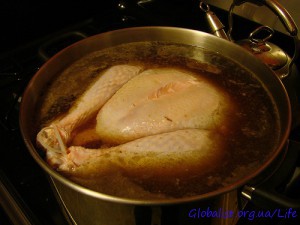 Рецепт приготовления индейки в духовке с начинкой. Запеченная индейка с клюквенным соусом - традиционное блюдо ко Дню Благодарения.![]() Запеченная с начинкой индейка на День Благодарения - давняя американская традиция. Почему бы не приготовить индейку и нам, а праздник использовать как повод собрать всю семью вместе или просто друзей и близких? Ведь приготовление индейки - своего рода ритуал, который создает особенную атмосферу в доме, распространяя манящий аромат, смешанный с ожиданием празника. Согласитесь, ведь это прекрасно - дружно уплетать вкусную птицу и вспоминать семейные или дружеские истории, смешные или немножко грустные. Напомню, что в США День Благодарения отмечается в четвертый четверг ноября. Это один из самых любимых праздников у американцев, который они лениво проводят в кругу семьи и близких людей. А также своего рода прелюдия к Рождеству, ведь именно после Дня Благодарения начинаются рождественские распродажи и кипит подготовка к празднику. Смотрите также украшение праздничного стола на День Благодарения. Подготовка и выбор индейки Готовиться ко Дню благодарения лучше начать заранее, купив индейку за несколько дней. Для начала, выбираем птицу. Чтобы гости были сыты, рекомендуется покупать индюшку из расчета 0,5 кг на каждого гостя, но если у вас получается больше - не переживайте остатки не пропадут. Поскольку многие покупают птиц в супермаркетах, она вероятнее всего будет замороженная. Но на что надо обратить внимание, так это на этикетку. Надпись на ней fresh, в отличие от frozen, означает, что птицу хранили при температуре 0 градусов. Natural - знак того, что индейку не кормили искусственными добавками, free range - что она паслась на воле, organic - что ее не кормили антибиотиками. Кроме этого, индейки могут быть кошерными - это значит, что они промывались соленой водой и поэтому очень влажные. Разморозка птицы Разморозьте индейку в холодильнике или в прохладной комнате. Но не размораживайте ее в теплой комнате или под горячей водой. Индейка должна быть комнатной температуры. Сначала нужно достать патроха, которые должны быть сложены внутри в мешке (если вы покупаете индейку в супермаркете). Затем положить индейку на тарелку и на самую нижнюю полку холодильника. Взвесьте ее или посмотрите на упаковке, чтобы рассчитать время запекания и размораживания. Рассчет на порции, время размораживания и приготовления: Мариновка индейки На индейку, весом 4-5 кг: Утром в день праздника выньте индейку из раствора, ополосните в холодной воде и насухо вытрите изнутри и снаружи бумажными полотенцами. Подготовленную птицу оставьте в кухне на несколько часов, чтобы она дошла до комнатной температуры перед отправкой в духовку. Начинка для фаршировки индейки и подготовка к запеканию Обычно основой для начинок-гарниров являются подсушенный измельченный хлеб, рис, овощи, свиной фарш или гречка (в российской традиции), а в составе фарша-начинки часто используются овощи, фрукты, ягоды и грибы. При фаршировке птицы следует помнить, что не стоит набивать все внутреннее пространство начинкой. Лучше ограничиться яблоком или апельсином внутри птицы, а начинку неплотно разместить под кожей в области шеи и с задней стороны. Так начинка обязательно пропечется. Излишки начинки можно запечь рядом с птицей или в отдельном блюде. Индейка прекрасна с яблока