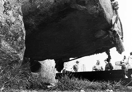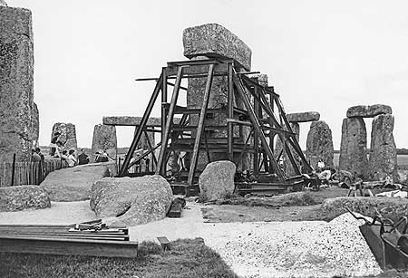 В 1958 году "упавшими камнями" были камни "сарсенового кольца", их ширина до 210см. Фотографии, естественно, нет; в обширной дезо-публицистике нашёлся только "Набросок центральной части Стоунхенджа, если смотреть с запада (1958г.), до восстановления камней трилита (57-58)" :