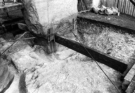 Но в итоге часть "древнего мегалита" всё же обвалилась, как видно, в канун "сдачи объекта" - презентации его общественности. Времени дальше над дырой мороковать не осталось. Увезли отвалившееся литьё и оставили "мегалит" как есть: