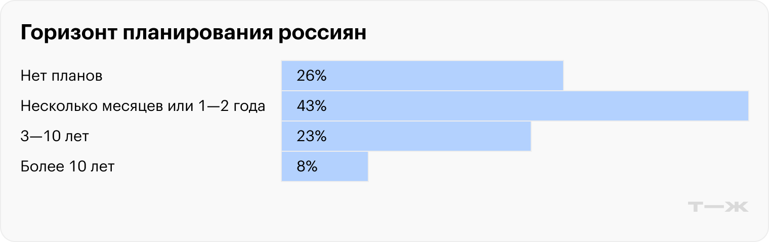 Цель в жизниИсследование с участием 6 000 человек, длившееся в течение 23 лет, показало: люди с четкими целями на будущее - будь то профессиональные достижения, творческие проекты, семейные планы или что-то еще - живут дольше. Вывод остается тем же, даже если учесть состояние здоровья и другие факторы, которые потенциально способны влиять на продолжительность жизни. Объяснение этого феномена, по-видимому, кроется в самом механизме достижения целей. Наличие долгосрочной перспективы придает жизни смысл, наполняет ее содержанием, мотивирует к активной деятельности и преодолению трудностей. Это, в свою очередь, позитивно сказывается на психологическом благополучии и укрепляет стрессоустойчивость. Отсутствие четкого видения будущего, неспособность ставить перед собой долгосрочные цели, наоборот, ведут к чувству бессмысленности существования, депрессии и снижению мотивации. Жизнь превращается в череду рутинных действий без ясной перспективы, без «света в конце тоннеля». Все кажется серым и однообразным. По-видимому, это сказывается и на общем самочувствии, и на продолжительности жизни. Способность ставить долгосрочные цели и планировать жизнь на длительную перспективу, как показали социологические исследования, значительно зависит от культурных особенностей. Например, жители стран Восточной Азии демонстрируют наиболее долгосрочный подход к планированию и постановке целей. Их горизонт планирования часто простирается на 100 лет вперед. В странах Восточной Европы, в том числе и в России, преобладает краткосрочная перспектива - 5-10 лет. Данные общероссийского опроса 2021 года подтверждают эту тенденцию: только 8% россиян строят планы на срок более 10 лет. ![]() Отечественные исследователи связывают это с отсутствием у россиян навыков и традиций долгосрочного планирования, что может быть вызвано постоянными кризисами различной природы, которые сотрясали страну в последние 30 лет. В российской культуре также распространены поговорки вроде «лучше синица в руках, чем журавль в небе» или «человек предполагает, а Бог располагает». Они отражают пессимистический взгляд на будущее и подрывают веру в возможность построения долгосрочных планов и достижения отдаленных целей. Этот взгляд угнетает инициативу и стремление планировать, ставить цели и верить в свой успех. Причина № 3
